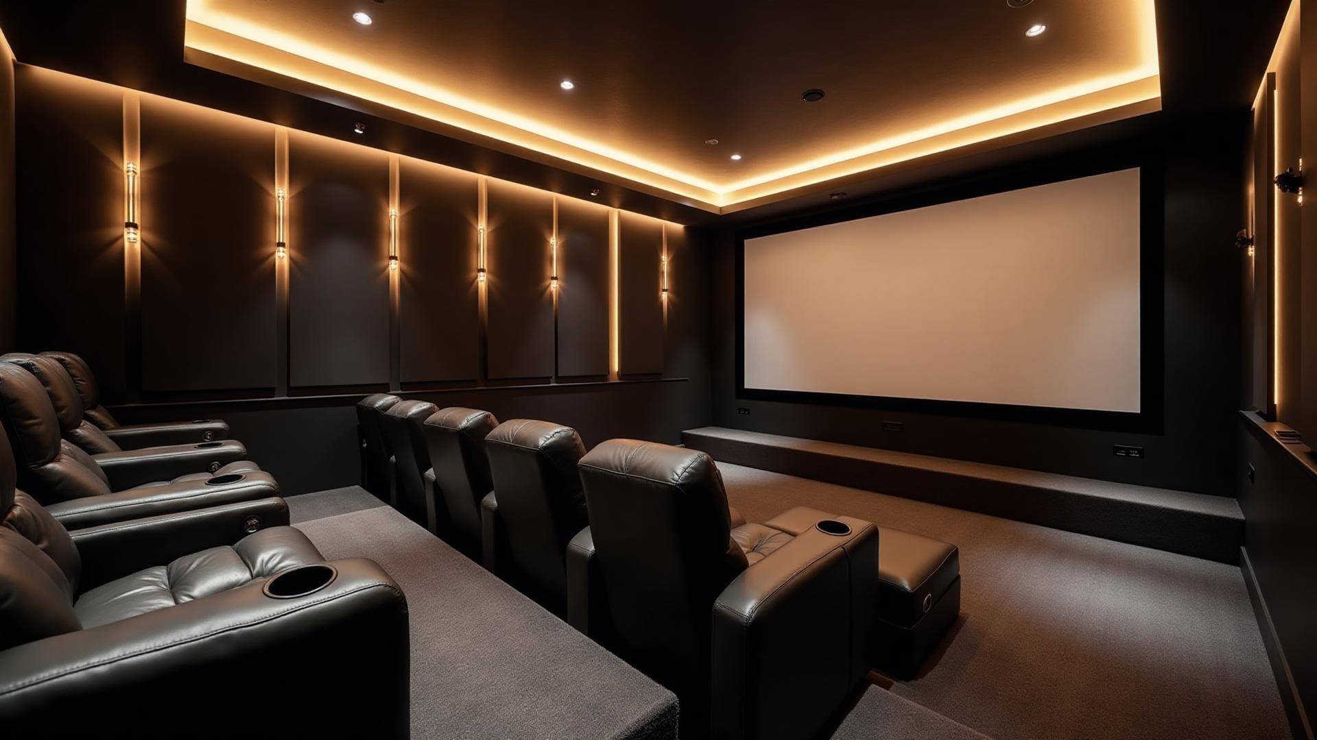 Award-winning home theater design with premium acoustics, cutting-edge projection systems, and luxury seating arrangements.